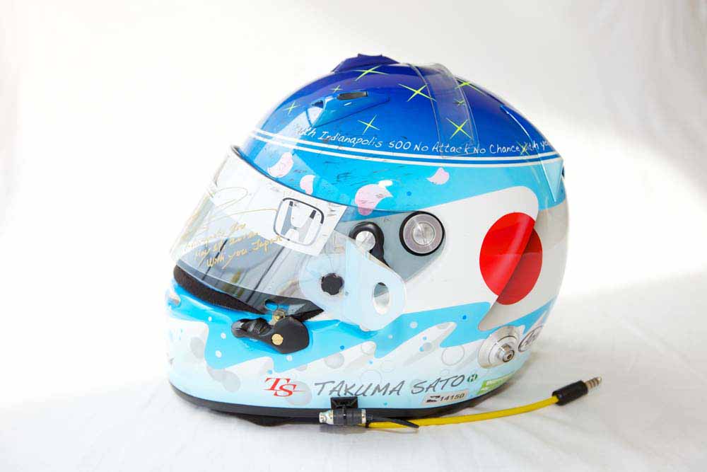 佐藤琢磨が着用したヘルメットをチャリティ・オークションに出品し、集まった収益の一部を活動費にしています。
